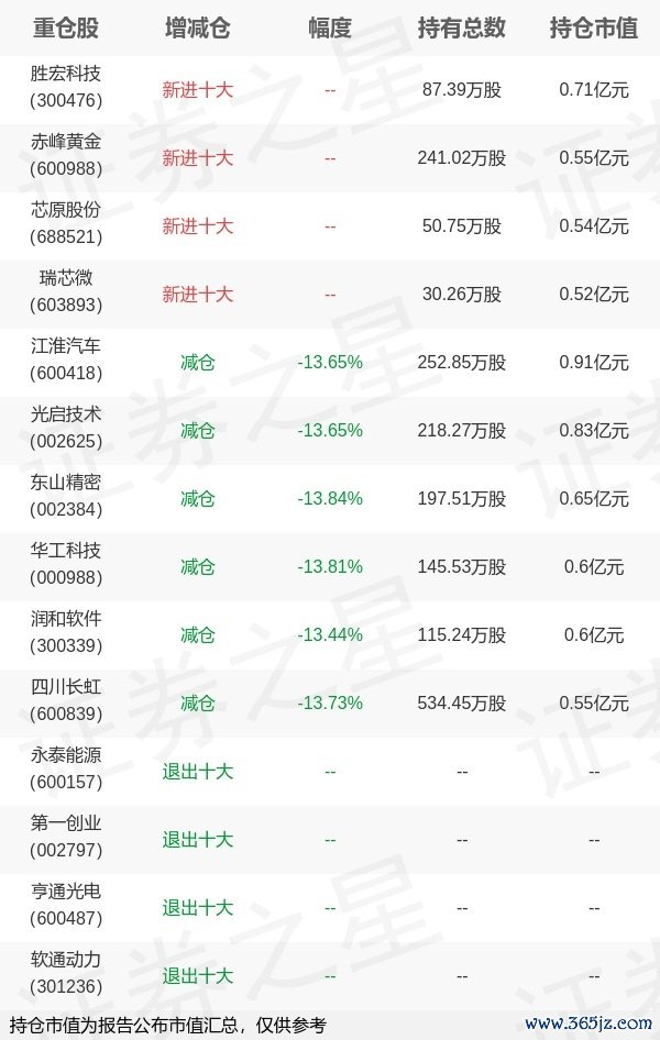 本站消息,4月22日嘉实基金旗下何如 李直管理的嘉实中证500交易型开放式指数基金公布一季报,近1年净值增长率7.61%。与上一季度相比,该基金前十大重仓股新增胜宏科技,赤峰黄金,芯原股份,瑞芯微;其中江淮汽车持仓占比0.86%,为该基金第一大重仓股;永泰能源,第一创业永之胜,亨通光电,软通动力等退出前十大重仓股;详细数据如下: